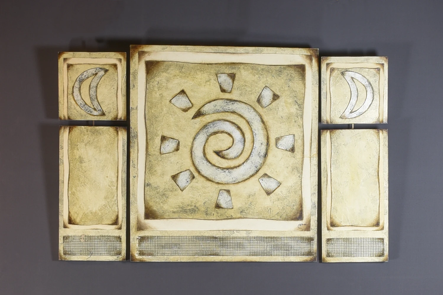 (30%OFF) Comprar Imagem Decorativa De Madeira Bege Metal Cinza Espiral 70x80 Barato Preço