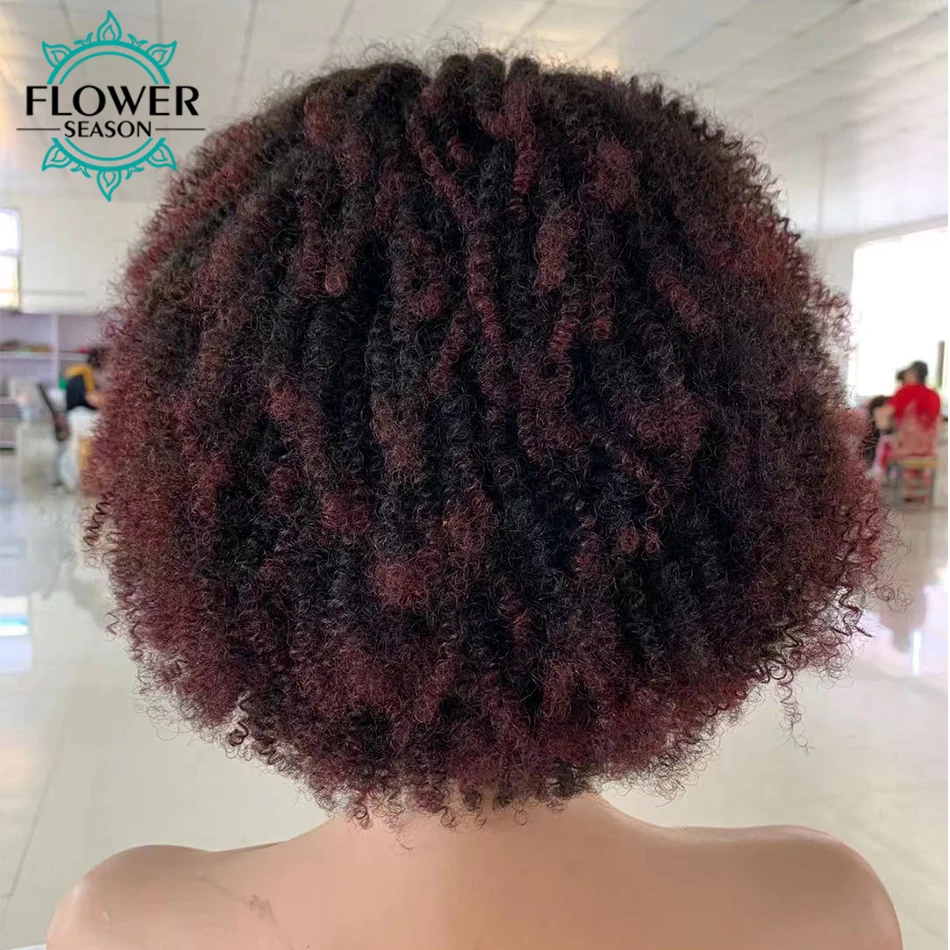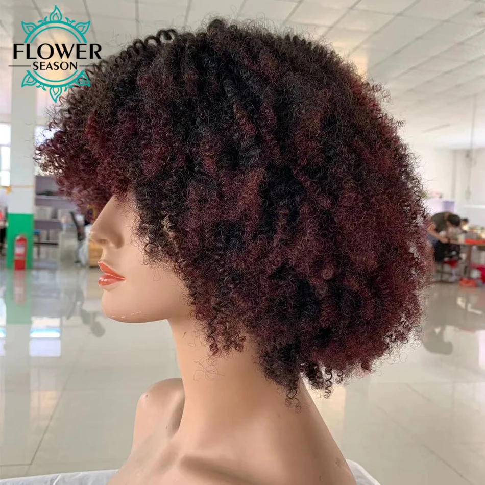 Special Offer 1b 99j Borgonha Vermelha Peruca De Cabelo Humano Brasileiro 180 Densidade Afro Kinky Encaracolado Máquina Completa Feita Peruca Topo Ombre Cor Flowerseaso Discount (6%OFF) Today!