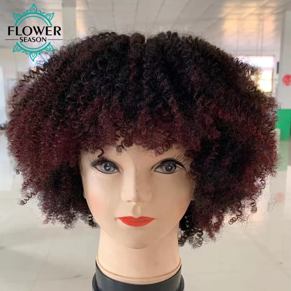 Product Name: 1b 99j Borgonha Vermelha Peruca De Cabelo Humano Brasileiro 180 Densidade Afro Kinky Encaracolado Máquina Completa Feita Peruca Topo Ombre Cor Flowerseaso